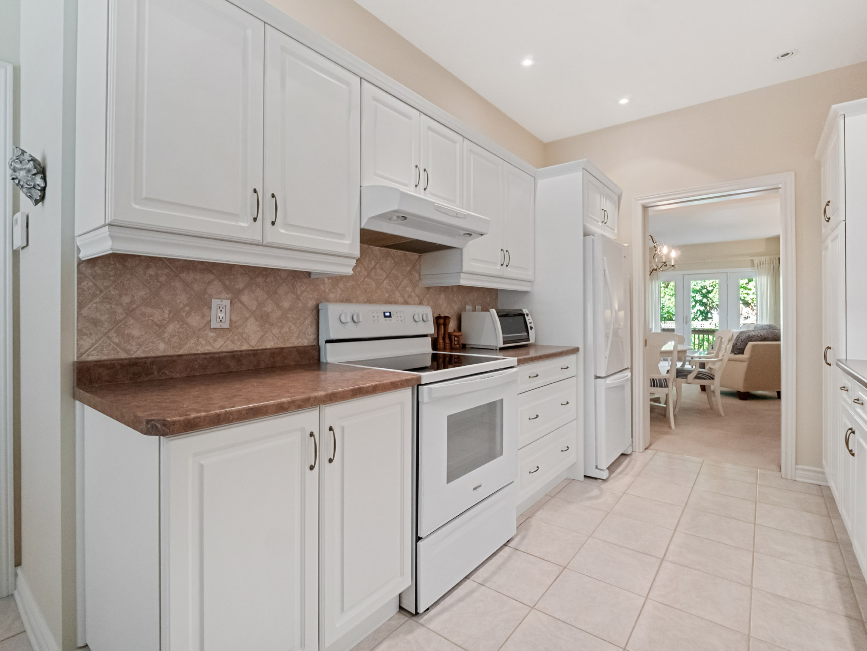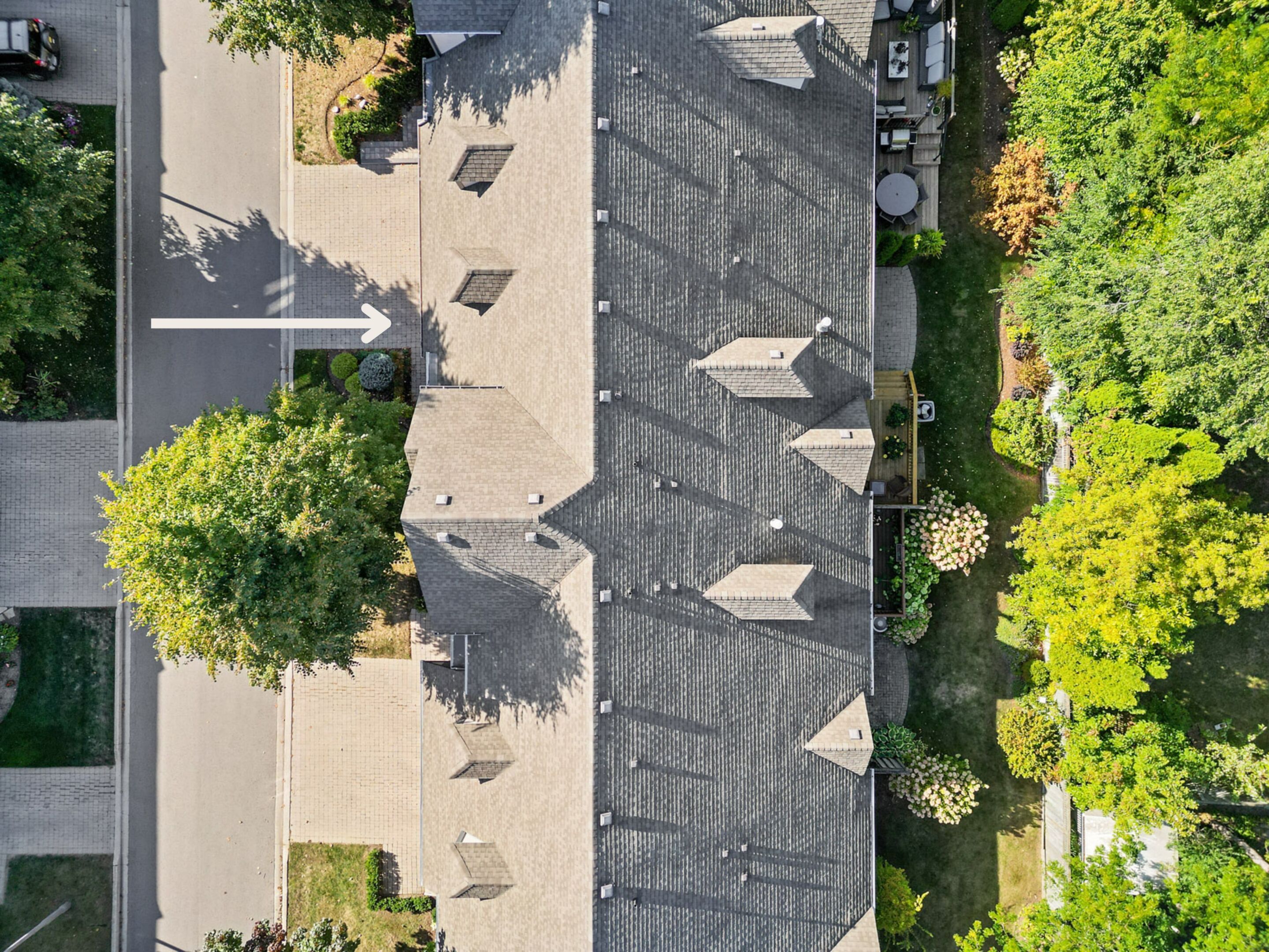 - Sliding doors to a deck and private lower patio surrounded by mature trees