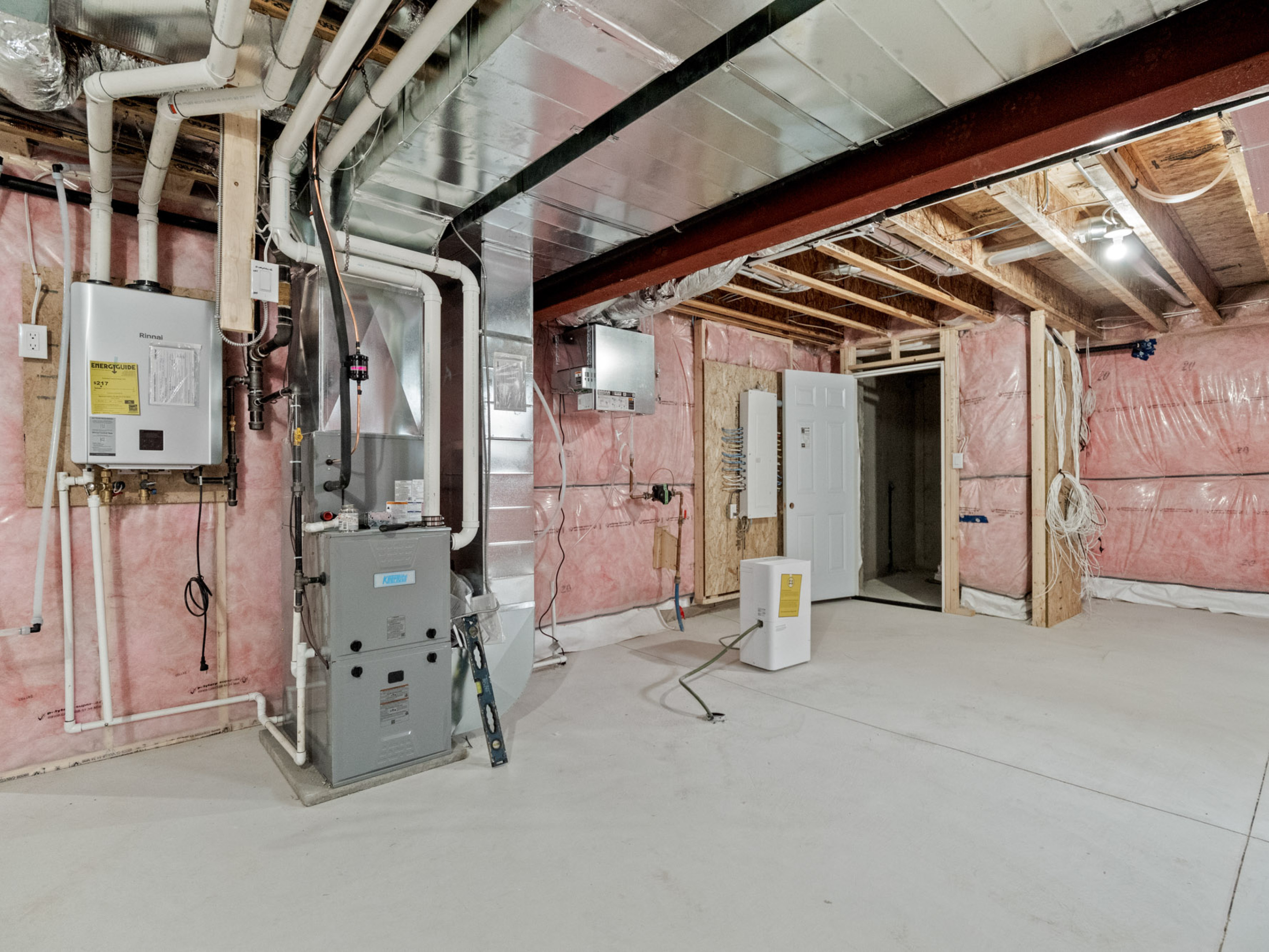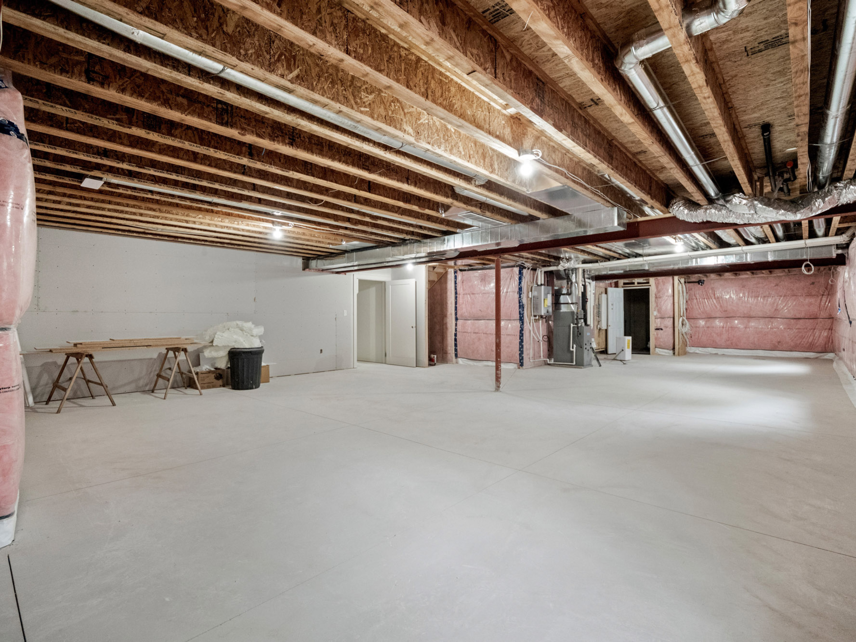 The partially finished lower level extends the living space with an additional bedroom and full bathroom, with room to finish more if desired.
